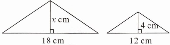 2. 如图,把左边的三角形按一定的比缩小后,可以得到右边的三角形。那么 x = (