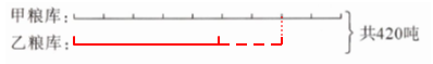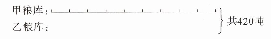 1. 甲、乙两个粮库共有粮食 420 吨。从甲粮库取出$\frac {2}{9}$的粮食放入乙粮库,两个粮库的粮食就同样多。原来甲粮库有粮食多少吨?(先把线段图补充完整,再解答)