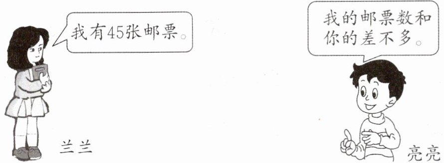 已知兰兰有45张邮票,亮亮的邮票数和兰兰的差不多,“差不多”意味着亮亮的邮票数接近45张。