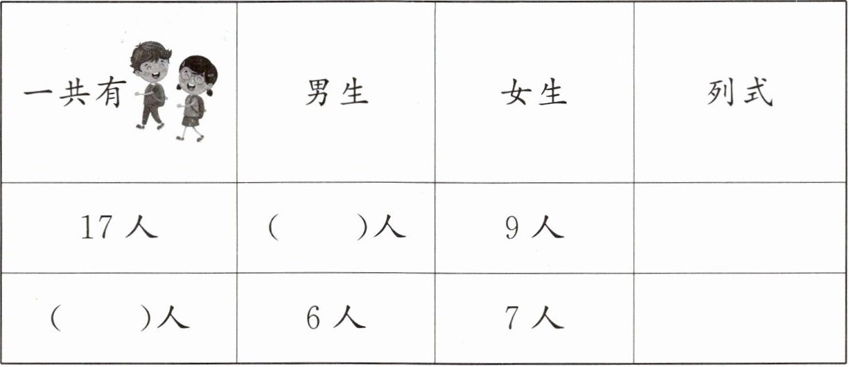 一共有$17$人,男生有( )人,女生有$9$人,