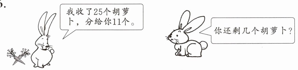 解析:本题考查减法运算在实际问题中的应用,通过已知的胡萝卜总数和分出去的数量,求剩余数量,用总数减去分出去的数即可。