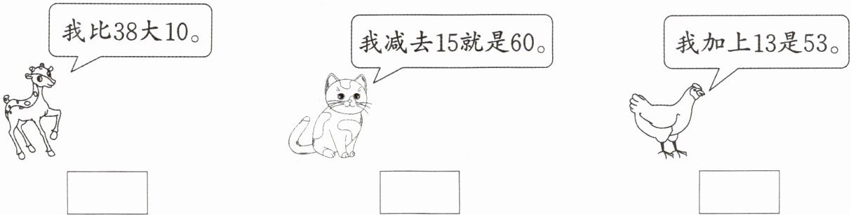 对于小鸡所说的“我加上$13$是$53$”,已知一个加数与和,求另一个加数,根据加数$=$和$-$另一个加数,可得$53 - 13 = 40$。