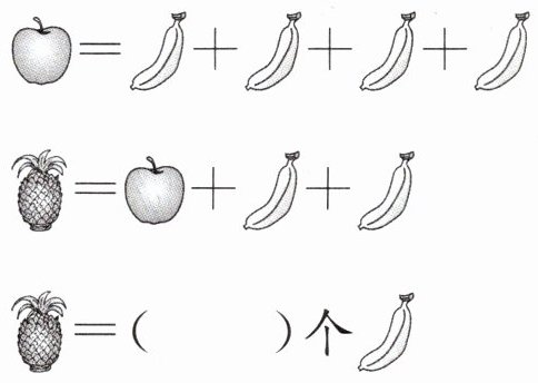 从第二个等式可知$1$个菠萝等于$1$个苹果加$3$根香蕉的数量,因为$1$个苹果等于$4$根香蕉,所以$1$个菠萝等于$4 + 3 = 7$(根)香蕉的数量。