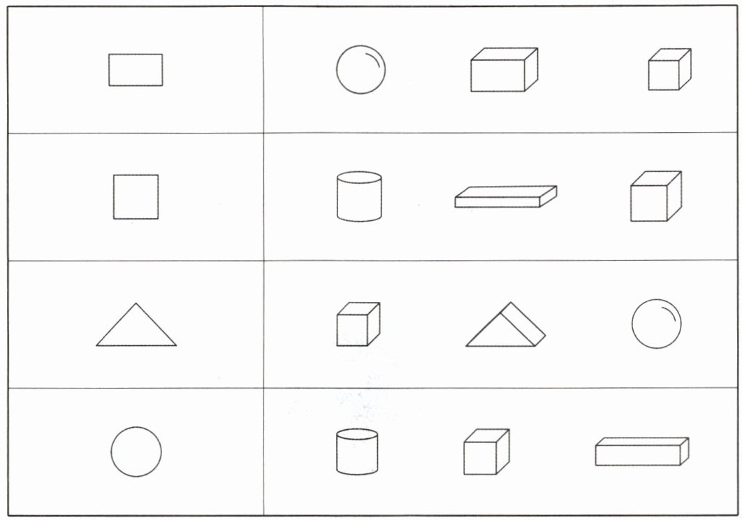 1. 用下面右边的哪个物体可以画出左边的图形?把它圈起来。