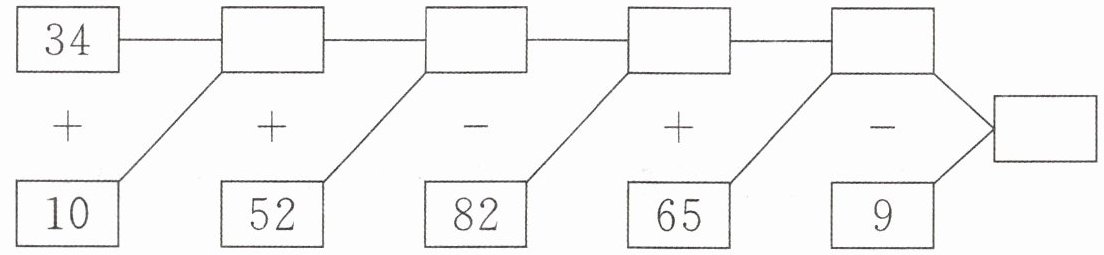 解析:本题可根据加减法运算规则,从左到右逐步计算出每个方框中的得数。