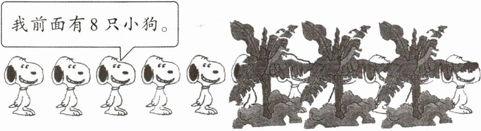 解析:从图中可知,其中一只小狗前面有8只小狗,要求这一队小狗的总数,需要将这只小狗以及它前面的8只小狗合起来,用加法计算。