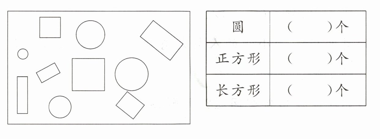 5. 先给不同的图形涂上不同的颜色,再数一数各有几个。