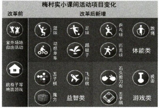 7.①学校小课间改革前、后的活动项目有哪些变化?(2分)②了解学校就老师和家长共同关心的问题所采取的应对措施(2分)
