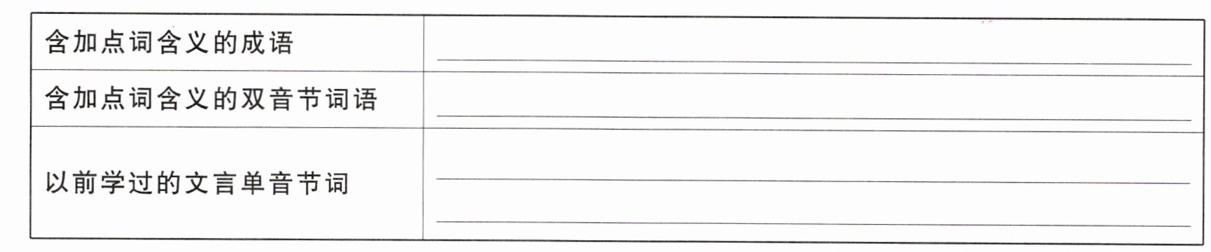4.第二小组展示了他们搜集到的含上面加点词含义的成语、现代汉语双音节词语和以前学过的文言单音节词。