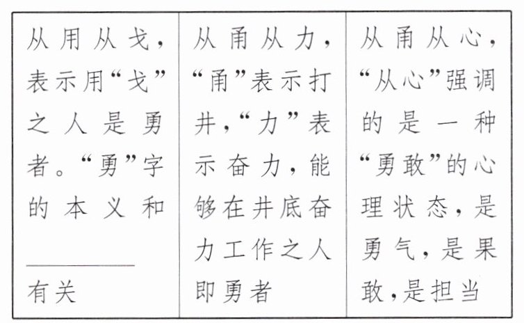 (4)汉字溯源 读完以上文字,同学们共同探究了“勇”字在演变过程中的内涵。请补充“勇”的本义。
