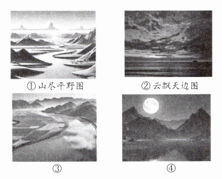 5. 《渡荆门送别》中间两联描写了诗人游历途中的自然风光,请仿照示例,为其余两幅图命名。