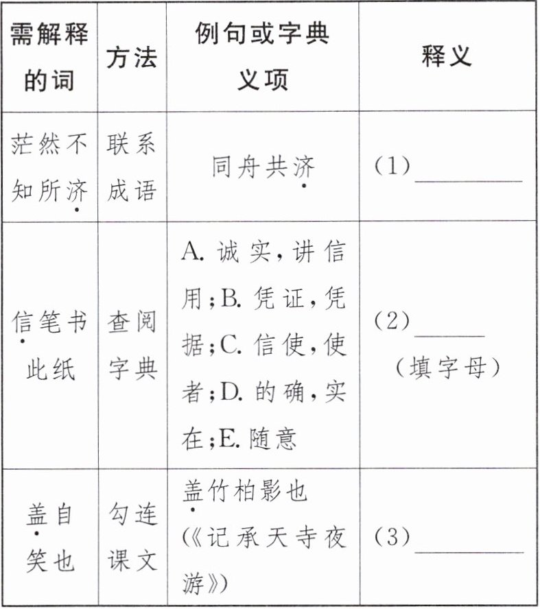2. 理解文言字词的方法有多种,请根据下面的提示解释加点词。(3 分)