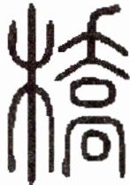 (6)右边图片是某个汉字的小篆字体,还带有甲骨文的象形特征。请你用正楷写出这个汉字,并展开联想,从图形构成来分析这个汉字的构造。