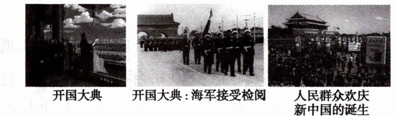 (1)叙述:1949 年 10 月 1 日下午,在北京天安门广场,隆重举行开国大典。毛泽东向全世界庄严宣告:“中华人民共和国中央人民政府今天成立了!”开辟了中国历史的新纪元。中国结束了一百多年来被侵略、被奴役的屈辱历史,真正成为独立自主的国家;中国人从此站立起来了,成为国家的主人。(从时间、地点和影响三个角度回答即可)