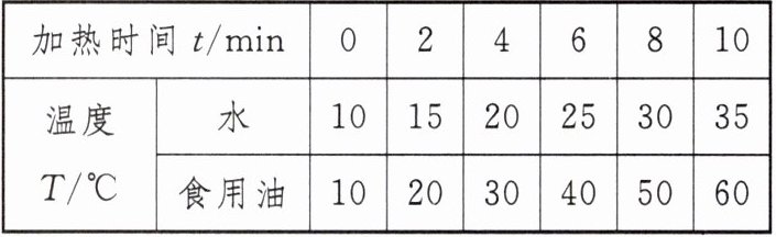 、初温均相同的水和食用油。(3)每隔2min测量一次水和食用油的温度,将实验数据记录在表中。分析数据可知,若要使水和食用油升高到相同的温度,则需要给水加热更