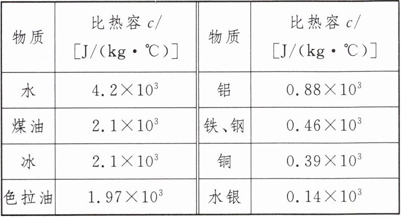 8. 下表是一些物质的比热容,由表可知: