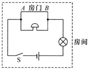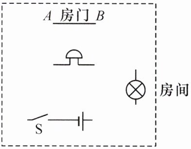 11. (2024·唐山丰润区期末)“创新”实验小组的同学要设计一个自动防盗报警电路。要求: 晚间开关 S 闭合后, 灯亮、电铃不响; 当房门被打开时, 细导线 AB 被扯断, 灯亮且电铃发声自动报警。请按要求用直线连接如图所示的电路元器件。