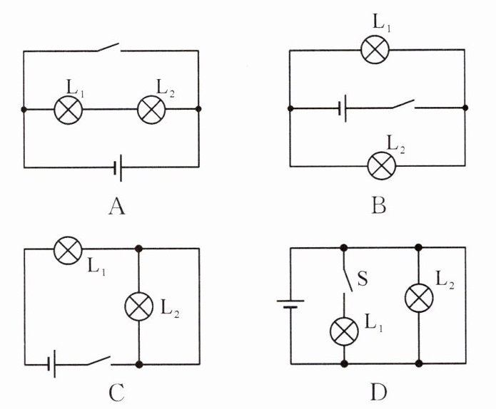 4. 在如图所示的四个电路中,开关能够同时控制两盏灯,且两灯并联的是(