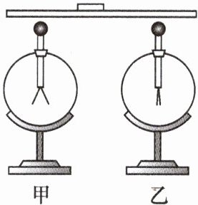 9. 取两个相同的验电器甲和乙,如图,使甲带负电荷,乙不带电,下列分析错误的是(