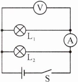 【例 2】如图所示,电源电压不变,闭合开关 S,灯泡 L $ _ { 1 } $、L $ _ { 2 } $ 都发光,一段时间后,其中一个灯泡突然熄灭,而电流表和电压表的示数都不变,产生这一现象的原因可能是(