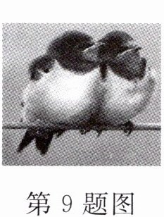 9. 如图所示,小鸟双脚立在某高压输电线的同一根导线上。高压输电线每千米的电阻为 0.3 Ω,通过输电线的电流是 300 A。如果小鸟两爪间的距离是 4 cm,小鸟身体的电阻约 1 000 Ω,输电线上的小鸟两爪间的电压约为