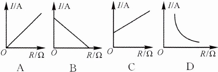 2. 下列图中,能正确描述电压一定时,电流随电阻变化的图像是 (