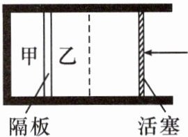 14. 如图所示,用气缸、固定隔板和活塞密闭甲、乙两部分气体,气缸和活塞均不导热,隔板导热良好。迅速将活塞向左推至图中虚线位置并固定,静置一段时间。下列说法正确的是(
