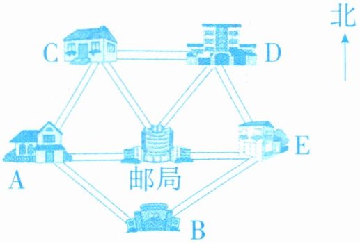 邮递员王叔叔从邮局出发分别给 A、B、C、D、E 五个客户送快递,请你帮他设计一条既不重复,又能把所有快递都送到的路线。