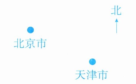 3. 北京市是我国的首都,天津市是我国的一个直辖市。两者的位置如下图所示,天津市在北京市的(