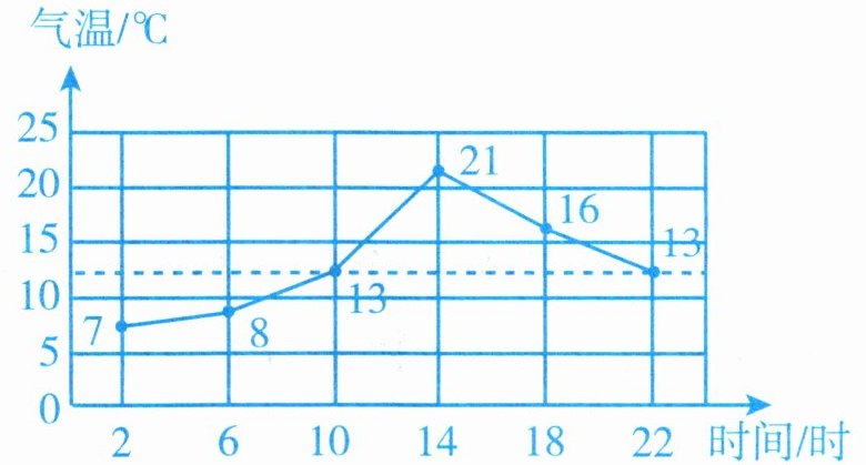图中的折线表示某地今年某日 2 时至 22 时气温的变化情况,虚线表示这一天的平均气温。