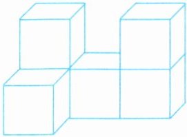 4. 在下图中添上一个同样大的小正方体,使得从前面、上面两个不同方向看到的图形都不变,有(