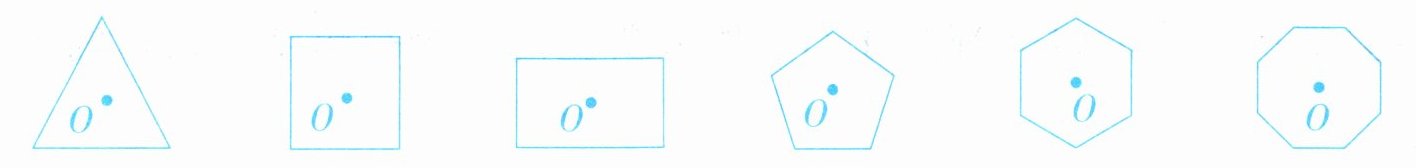 四、下面的图形绕中心点O至少旋转多少度就能与原来的图形完全重合?填一填