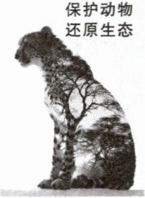 4. (3分)示例:这幅封面图以豹子的侧面轮廓为主体,身体上有树木和天空的图案,海报上方的文字"保护动物 还原生态",呼吁人们要保护野生动物,努力恢复生态环境,还野生动物一个美好家园,体现了人类对野生动物的尊重和关爱,也反映了人与自然和谐共生的理念。