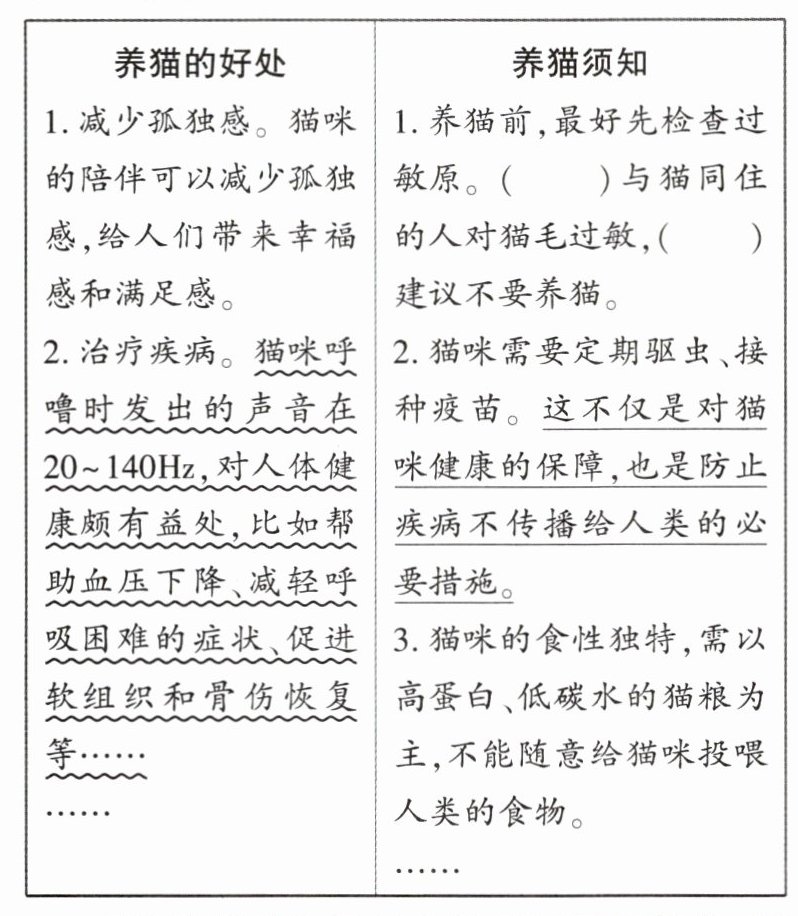 (2)请在“养猫须知”中的括号内填入恰当的关联词语。(2分)