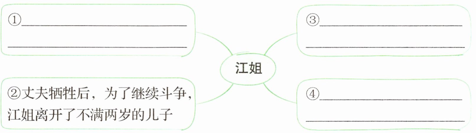 ②丈夫牺牲后,为了继续斗争,江姐离开了不满两岁的儿子 ④______
