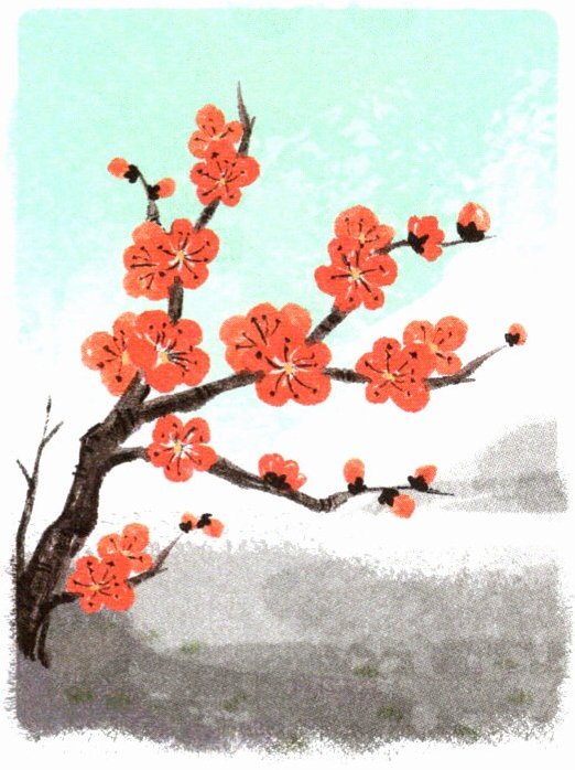 红岩上红梅开/千里冰霜脚下踩/三九严寒何所惧/一片丹心向阳开/红梅花儿开/朵朵放光彩/昂首怒放花万朵/香飘云天外/唤醒百花齐开放/高歌欢庆新春来______