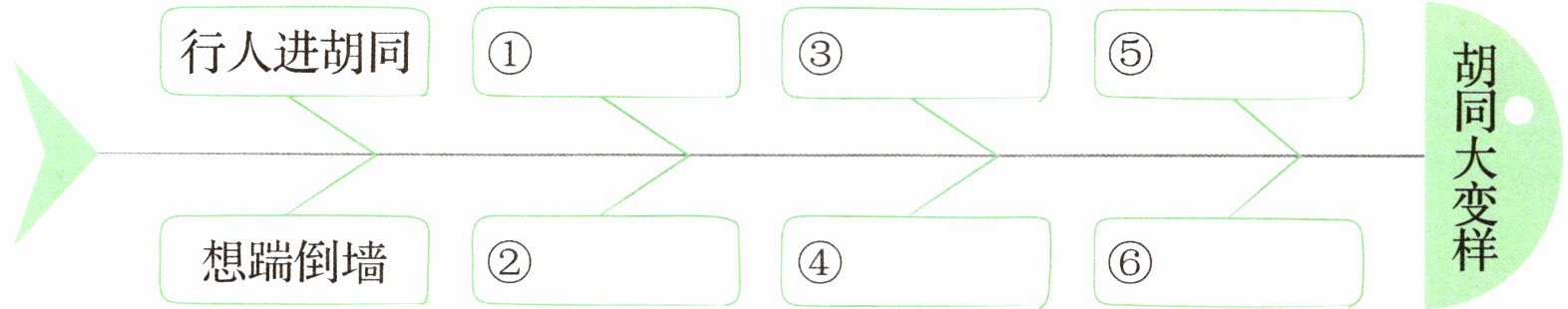 1 ①小商小贩进胡同 ②想扒房子 ③老者进胡同 ④在胡同口的墙壁上留字 ⑤无人误进胡同 ⑥胡同清静多了