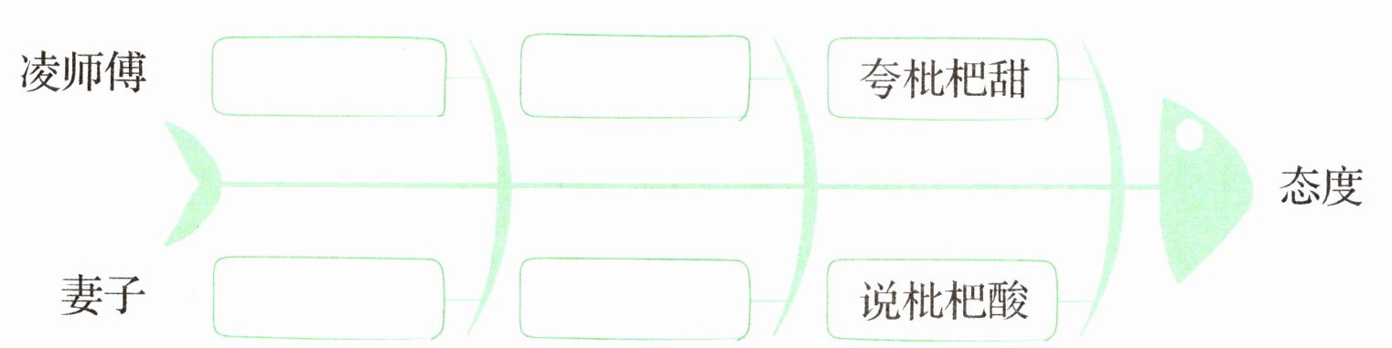1. 整体感知 面对老汉借伞,凌师傅和妻子的态度有什么不同?根据文章内容,补充下列图示。(填序号)(4 分)