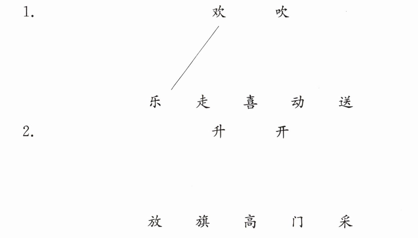示例:爸 爸爸 床 木床 语 语文 队 队员 欢 欢乐 放 放学 饭 吃饭 到 到达 组 组长 问 提问 蛙 青蛙 这 这里 家 家人 秋 秋天 跑 跑步 情 心情 笔 毛笔 行 行走