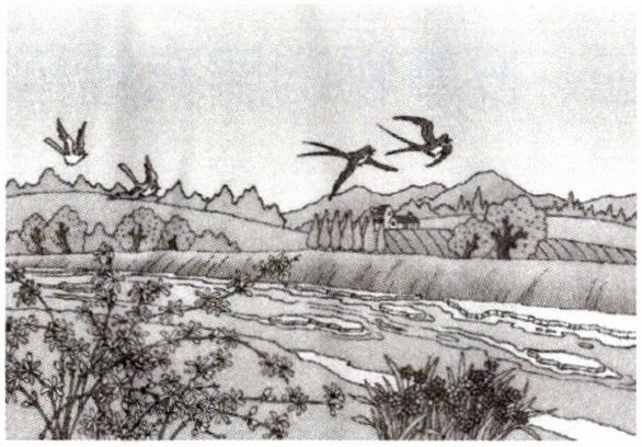 春天悄悄地来了。小河解冻了,唱着欢快的歌向前流去。岸边的花儿竞相开放,五颜六色的,美丽极了。远处的山上长满了绿树,几间小房子在绿树中若隐若现。天空中,几只燕子穿着黑色的衣裳,扇动着翅膀,自由自在地飞翔,好像在说:“春天来啦,春天来啦!”到处都是春天的气息,真让人开心。