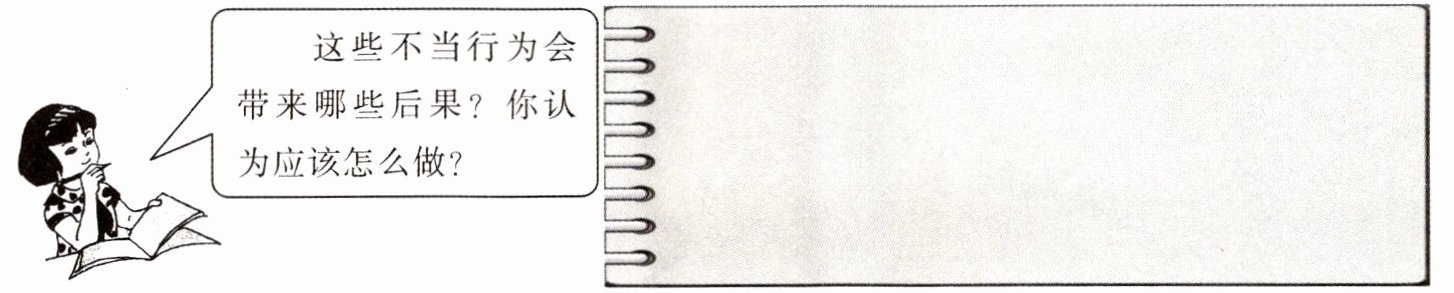 【解析】:题目考查的是对不文明行为的认识及正确做法,涉及道德规范和社会规则知识点。需要先分析图片中的行为,再说明后果,最后提出正确做法。