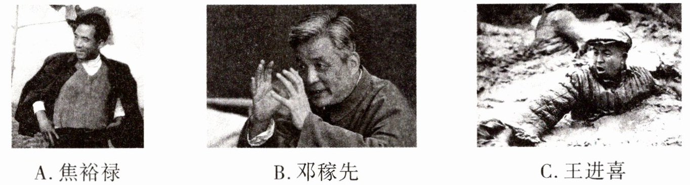 【解析】:“宁肯少活二十年,拼命也要拿下大油田”是王进喜的名言。焦裕禄是县委书记的榜样,主要在兰考县带领群众治理风沙等;邓稼先是“两弹一星”元勋,为核武器研发做出巨大贡献;而王进喜在大庆油田开发中展现出顽强拼搏的精神,被誉为“铁人”。从插图来看,C选项的人物形象与王进喜在油田工作的场景相符。