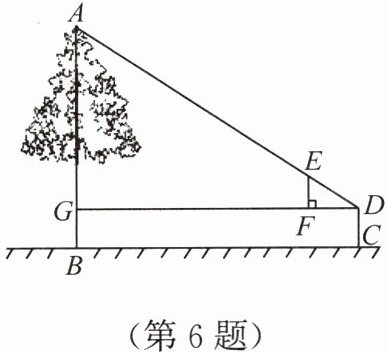 6. 小明用自制的直角三角形纸板DEF测量树AB的高度.测量时,使直角边DF保持水平状态,其延长线交AB于点G;使斜边DE与点A在同一条直线上.测得边DF离地面的高度为1.4 m,点D到AB的距离等于6 m(如图所示).已知DF=30 cm,EF=20 cm,那么树AB的高度等于(