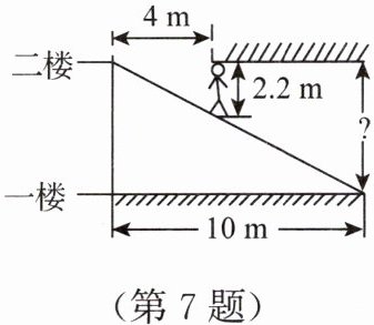 7. 如图,某超市在一楼至二楼之间安装有电梯,天花板与地面平行,张强扛着箱子(人与箱子的总高度约为2.2 m)乘电梯刚好完全通过.请你根据图中数据回答,两层楼之间的高约为(
