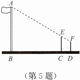 5. 在一次数学活动课上,老师让同学们到操场上测量旗杆的高度,然后回来交流各自的测量方法.小芳的测量方法是拿一根高3.5 m的竹竿直立在离旗杆27 m的C处(如图),然后沿BC方向走到D处,这时目测旗杆顶部A与竹竿顶部E恰好在同一直线上,又测得C,D两点的距离为3 m,小芳的目高为1.5 m,这样便可知道旗杆的高.你认为这种测量方法是否可行?请说明理由.