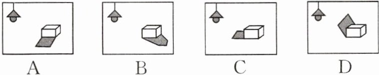 2. 在灯光下,四个选项中,灯光与物体的影子最合理的是(