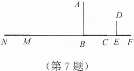 7. 如图,路灯下一墙墩(用线段AB表示)的影子是BC,小明(用线段DE表示)的影子是EF,在M处有一棵小树,它的影子是MN.