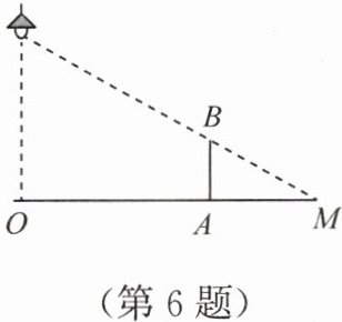 6. 如图,路灯距离地面8m,身高1.6m的小明站在距灯的底部(点O)20m的A处,则小明的影子AM的长为