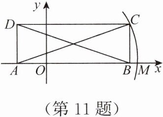 11. 如图,在矩形ABCD中,BD=2√{5},AB在x轴上.且点A的横坐标为-1,若以点A为圆心,对角线AC的长为半径作弧,交x轴的正半轴于点M,则点M的坐标为(