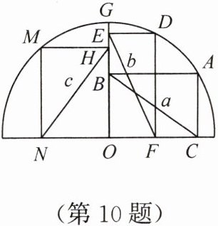 10. 如图,点A,D,G,M在半圆上,四边形ABOC,DEOF,HMNO均为矩形,设BC=a,EF=b,HN=c,则a,b,c之间的大小关系为(